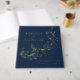 Cascading Navy and Gold Foil Leaves Wedding Guest Book