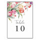 Elevate your wedding decor with this Cascading Tulip Table Number. A cascade of watercolor tulips adds a touch of elegance to your reception.