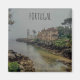 Panorama of Cascais, Portugal, bathed in fog, with a historic building and a lighthouse on a river.