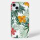 Iphone case with tropical leaves and flowers design, white background
