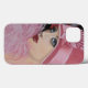 Original lady painting of a beautiful and alluring lady from the Art Deco era, wearing a pink hat and a pink fur. A novel design that works beautifully ofor a cell phone case.