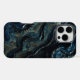 A captivating abstract artwork featuring flowing textures in deep blues, blacks, and metallic tones. The rich, layered design evokes the movement of dark waters or molten minerals, offering a dramatic and mysterious visual experience.