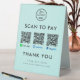 Boost your business's contactless payment options with this professional Cash App Venmo QR code scan to pay logo Table Tent Sign. Sleek and stylish, this sign is perfect for displaying at your checkout counter, restaurant table, or anywhere customers can easily scan and pay. Customise the design with your business logo and personalise it with a message.