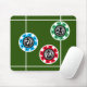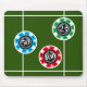 Casino gambling poker chips on green roulette table Mouse Pad. Personalise with custom text or money value. Las Vegas theme novelty design for online gambler, friends, family etc. Red green and blue marker coins with numbers.