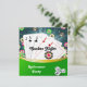 Fun Casino Night theme Retirement Party invitation with playing cards, dice and polker chips. Card back has matching design. All text on front and back is ready for you to customise.