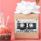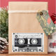The "Cassette Tape" design features a typical vintage music cassette tape, with a transparent case and colourful stickers and writing, It also has customisable text which you can personalise.