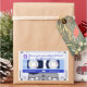 The "Cassette Tape" design features a typical vintage music cassette tape, with a transparent case and colourful stickers and writing, It also has customisable text which you can personalise.