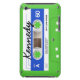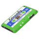 A cassette tape phone case in green, blue, and white; personalise it with your name!