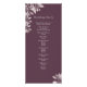 A trendy floral wedding program. Watercolored flowers in dusty rose as decoration. Templates for your names, dates, details of the ceremony and the party. Cassis ,deep purple background, white coloured letters.