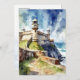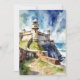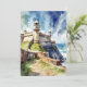 This postcard features a watercolor portrait of Castillo San Felipe del Morro in Puerto Rico.