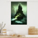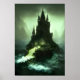 Fantasy art of a large castle on a rock in the the stormy sea, . This is a AI generated art.