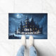 Welcome doormat of a dark gothic castle nestled between ancient trees and the mountain ranges behind. Above, the silver Moon shines through the clouds and snowflakes casting her glow over a peaceful wintry scene, an outside peace which belies the torment of the lord of the castle. Night after night he spends the days among his tomes remembering what was and what could have been. From the four corners of the land he has received the visit of a proud crow, a wise owl, a fearless dove, and the beautiful swan, but he needed nothing they could give for in his hollow heart only resided the hope of his desire, and the truth of his life was the eternal waiting for the wish to become reality. This artwork of snow and hollow hearts was generated in Leonardo.ai and then altered by me.
