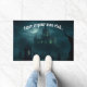Doormat of the gothic residence of a villainous necromancer. Every night of a full Moon the evil thaumaturgist conducts his vile experiments animating the dead from the tombs that surround his castle. Nefarious green lights can be seen from the outside every time the necromancer pulls a lever in his laboratory, just the same moment when dead-men groans are heard long and deep in the foggy night... It was made with Leonardo.ai and modified by me.