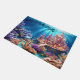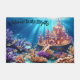 Doormat of an underwater castle made of colourful corals. The residence of an ancient race of water elves and mermaids, this castle presides over a subaquatic kingdom of marine life and fishes, never before discovered by man. The only visitor they receive from above are the powerful rays of the Sun which refract through the ocean to reach its depths. This image was done with Stable Diffusion, and slightly altered by me.
