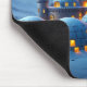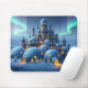 Mouse pad of an impressive castle made of igloos and stone, in a winter landscape of snow and pine trees. Magical aurora lights play in the evenfall sky, bathing the mountains and valley in a surreal atmosphere of heavenly colors. Amidst the misty strands of cold and snow, the stronghold castle known as "Winter Fire" stands. It is the last bastion of civilization and warmth before a vast expanse of frozen tundras, snowcapped mountains, and haunted forests open themselves to the wanderlust of the willing traveler... This artwork was created with ImageFX and upscaled with Leonardo.ai. Additional editing was done offline by me.