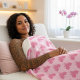The fabric is really soft, and thick, I’m sitting here with it wrapped around me and it’s so warm! It’s really smooth and sleek on the printed side and fluffy on the back. I love it! Such good quality, so vibrant and clear, not blurry at all! See the photos I’ve attached, there’s no filters or anything on them!