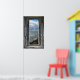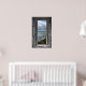 This poster that looks like a window has a stone surround aged by the centuries that will make you believe you are in a genuine Mediaeval Castle. Beyond the weathered stone window is a scene of the ocean breaking against the shore, with gorse in the foreground and hills in the distance. Clouds billow in a blue sky above the sea.