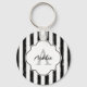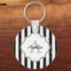 Casual Black Painted Stripes Monogram and Name Key Ring