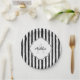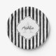 Casual Black Painted Stripes Monogram and Name Paper Plate