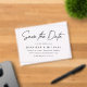 Announce your special day with the charming simplicity of our Casual Black Script Wedding Save the Date. This modern design features "Save the Date" in a black handwritten script, elegantly displayed on a transparent acrylic background. Perfect for any wedding style, this minimalist save the date card can be personalised with your names, wedding date, location, wedding website, and more. Effortlessly blending casual charm with modern elegance, it's the perfect way to share your excitement for the big day.