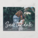 A modern save the date postcard designed to accommodate your favourite horizontal or landscape orientated full-bleed engagement photo. "Save the date" appears near the bottom of your photo in a fresh, casual handwritten brush marker typography style. Personalise with your names, wedding date and wedding location beneath.
