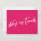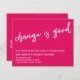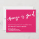 This suite's distinction is due to the modern, handwritten script font used for accent phrases. In this piece, the hand-lettered script font was used to create graphics depicting the words "change is good" on the front, and "stay in touch" on the back. The bright raspberry pink background can be changed to any colour you prefer. Please reach out with any special requests or for customising assistance. // 100 //