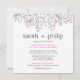 Casual but classy contemporary do-it-yourself wedding invitations. Whimsical wispy swirls with doodle style flowers with colourful candy pink and grey leaves border this beautiful wedding invitation set. Perfect for elegant garden weddings or fun and funky weddings in any season -- simply change the backbround colour for spring, summer, autumn, fall, and winter. Bold semi-formal lettering can be easily customised to please modern brides, or modify the sophisticated font styling to make it wild enough for the truly trendy bride. Simple but stylish elegance at affordable prices for frugal brides on a budget. Please contact us if you would like this design modified to match your bridal party colour theme. Style shown on basic square invitation template. Click Customise It to change size and style options.