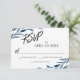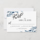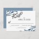 Casual Handwriting Script Blue Painted Leaves RSVP Card
