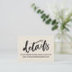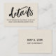 Keep your wedding guests in the loop with all your details with these pretty, modern wedding insert cards. A casual text overlay was designed using a modern handwritten font in black, simply reading "details". Use the template fields to customise these enclosure cards with your personal information. The background is cream and this editable colour can be changed to anything from your wedding palette that you choose; all editable text appears in black. // 100 //