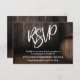 The background of this card is covered in an image that includes part of a wooden barrel against a dark rustic brown wall. Perfect for your whiskey, brewery, winery or other rustic-themed wedding celebration. Using a modern handwriting script font, I created a simple typography graphic image that reads "RSVP". Your personal details are easily added through the template fields. All layers are unlocked to allow you as much design control as you need, if you'd like to re-position or resize any elements, or otherwise make this piece your very own. Please do not hesitate to reach out to me for special requests or for assistance with customisation. // 105 //