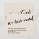 This suite's distinction is due to the modern, handwritten script font used for accent phrases. In this piece, the hand-lettered script font was used to create graphics depicting the words "we have moved" on the front, and "stay in touch" on the back. The light cream background can be changed to any colour you prefer. Please reach out with any special requests or for customising assistance. // 100 //