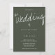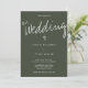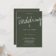 A wedding invitation with a casual, yet modern, typography design. This dark sage green solid colour invitation accents the big event with the word Wedding in a large, handwriting-style, font. The rest of the invitation is in clean, open, typography that gives the design a strong structure. This invitation reflects the relaxed, yet well-organised, nature of your wedding. Ready to check invitations off your list? Simply add your information, add this invite to your cart, and have a great wedding.