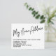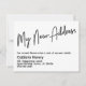This suite's distinction is due to the casual handwritten script font used for accent phrases. In this piece, the unique font was used to create graphics depicting the words "My New Address" on the front, and "Stay in Touch" on the back. The plain background can be changed to any colour you prefer and you can choose any font for your personal details, if you prefer. Please reach out with any special requests or for customising assistance. // 5 //