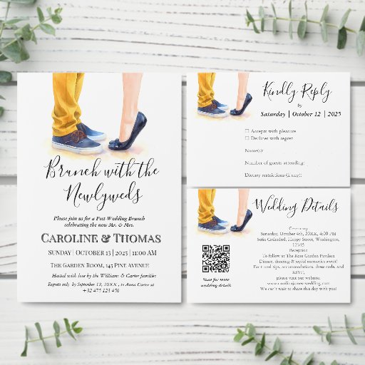 Casual Rehearsal Wedding Chic Couple Illustration Invitation