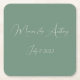 Casual Sage Green Simple Script Minimalist Wedding Square Paper Coaster