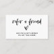 These stylish and chic black and white "refer a friend" small business referral cards cards feature casual, modern script typography, along with an elegant matching heart. A look that is both stylish and professional, and perfect for any type of occupation, such as content creator, makeup artist, hair salon stylist, and more. The back contains plenty of room for you to totally customise with your store or company information.