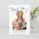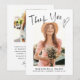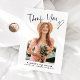 Simple and modern graduation thank you template card to send out to those who congratulated you, attended your graduation party, gave you gifts etc. It says "thank you" on the top in a casual hand lettered script font with a heart at the end. You can add a second picture on the back and the message is editable.
