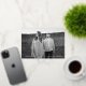 Simple save the date featuring your horizontal engagement photo with "Save the Date" in a gold foil handwritten script overlay. Personalise the foil save the date card by adding your names, wedding date, and wedding location. The photo save the date reverses to display your wedding website and other details in white lettering with a black background.
