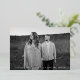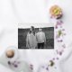 Simple save the date featuring your horizontal engagement photo with "Save the Date" in a gold foil handwritten script overlay. Personalise the foil save the date card by adding your names, wedding date, and wedding location. The photo save the date reverses to display your wedding website and other details in white lettering with a sage green background.