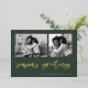 This simple classic green family holiday photo card features modern, casual gold foil script typography that says "season's greetings", with a two photo grid on the front for a stylish, modern and minimalist holiday design.