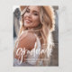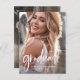 This trendy, elegant grad party postcard invitation features two photos of the graduate. On the front there is casual modern white script along with the grad's name, school, and class year. On the back is a second, faded, photo of the graduate with all of your party information clearly printed over it on an overlay. A stylish and simple graduation invitation that will highlight your grad's favourite personal photos!