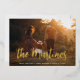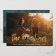 Send holiday greetings with these chic photo cards featuring your family name overlaid in gold foil hand sketched script lettering. Personalise with your custom Christmas or holiday message beneath.