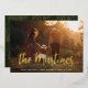 Send holiday greetings with these chic photo cards featuring your family name overlaid in gold foil hand sketched script lettering. Personalise with your custom Christmas or holiday message beneath.