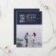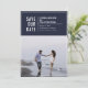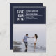 Bold and casual white typography and frame, single photo save the date card with navy blue colour backgrounds.