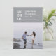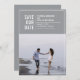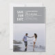 Bold and casual white typography and frame, single photo save the date card with trendy grey colour backgrounds.