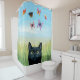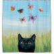 Cat 606 black Cat with butterflies Nature Shower Curtain