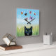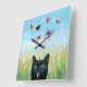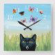 Cat 606 butterflies nature background square wall clock