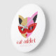 This adorable cat in red, gold, pink, and black glitter colors with star glasses adds a girly and trendy touch to your acrylic round clock. The text "Cat Addict" is written in red in a very original decorative font. We added a complementary line with a customizable name written in an elegant red dotted font. Please, replace the default name with yours, or feel free to delete it.