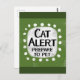 An irreverent and cute typographic animal design that says "Cat Alert, Prepare To Pet". It features black and red text on a white rectangle with funky, playful white dots surrounding it, all on a grey background.