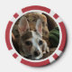 A set of poker chips featuring photos of a cat and a dog.